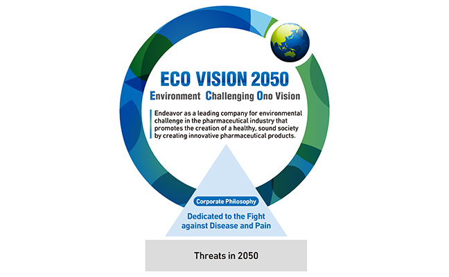 The “E” (environment) in ESG is one of Ono's strengths. Under our medium- to long-term environmental vision "Environment Challenging Ono Vision 2050 (ECO VISION 2050)," established in 2019, the company set the three priority issues of "Realization of a decarbonized society," "Realization of a water recycling society," and "Realization of a resource recycling society." We aim to be a leading environmentally friendly company in the pharmaceutical industry. ECO VISION 2050 has set specific and challenging targets, including zero greenhouse gas emissions by 2035 and 100% renewable energy for purchased electricity by 2025. In FY2024, 93.2% of the electricity we purchased came from renewable energy sources, and we are currently stepping up our efforts to use renewable energy not only in our own buildings but also in our tenant buildings to achieve our 100% target.