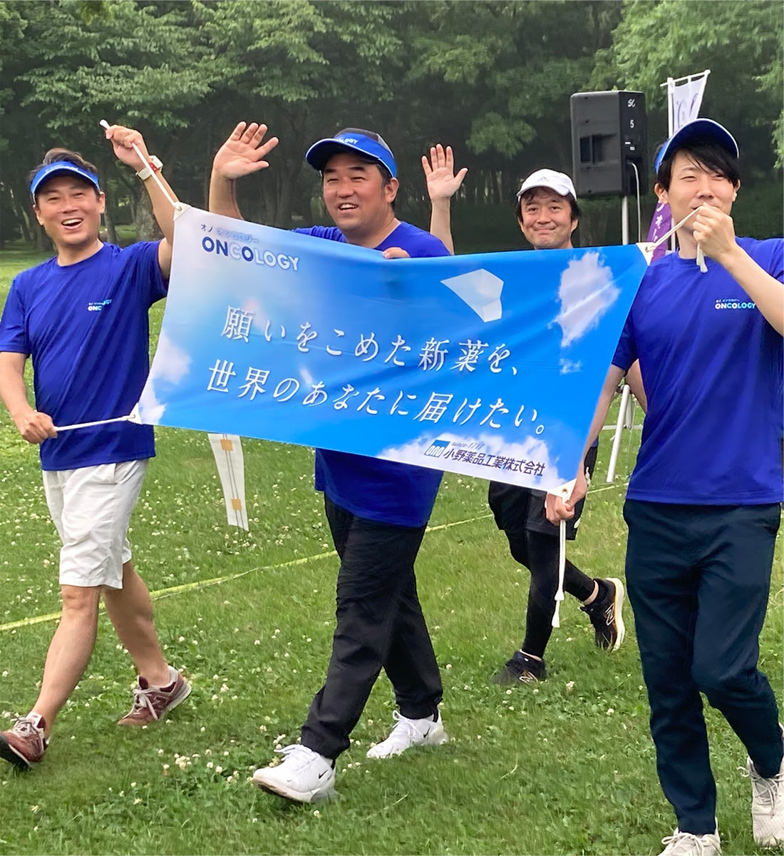 辻田 2014年に、当社は本格的にサステナビリティの取り組みを開始しました。この年は、小野薬品の成長を加速させた新薬を世に送り出した年でもあり、より一層、会社として社会的責任を果たす必要性を認識したタイミングでした。サステナビリティ推進室の前身となるCSR推進室を新設し、まずは、「リレー・フォー・ライフ」などの社会貢献活動から開始しました。これは、「がん患者さんは24時間病気と向き合っている」というコンセプトのもと、24時間チームで交代しながら歩き、全員が歩いた歩数に応じた金額を日本対がん協会へ寄付するチャリティ活動です。社員参加型の社会貢献活動であり、2014年から10年間に渡り継続して実施しています。2024年度は社員のリレーによって4,039,497歩に換算した寄付を行い、諸先輩方が築かれた活動を今も発展させています。